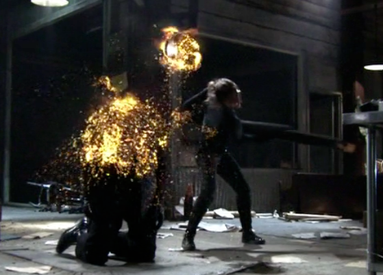 The climax of the episode comes at Cain’s ash lab–Marcus’ other favorite female vampire Chase (Jessica Gower) is leading a group of vampires, including war-trained Krista, to take out Cain, while Blade has been following one of Caine’s addicts to the lab. But Cain is one step ahead of Blade, and detonates a bomb in his evacuated lab that kills all of Marcus’ vampire troops except Krista and Chase.