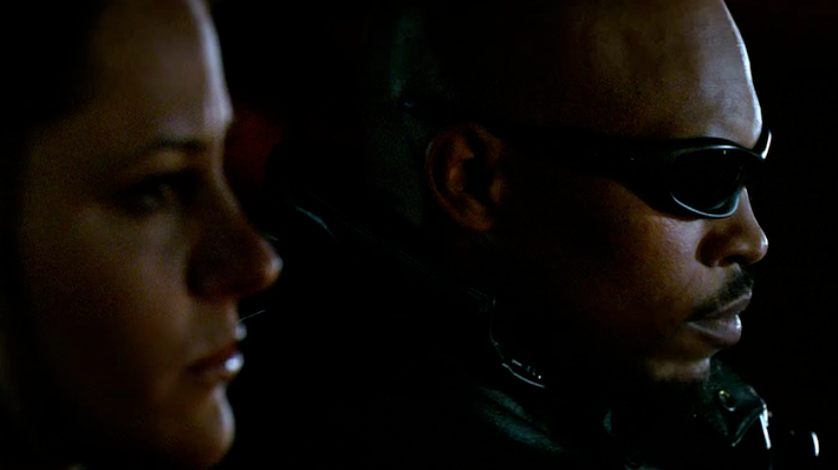Before I get into this episode’s plot and my thoughts on the continuing series, I want to take a moment to comment on the cinematography of this series. During the director’s and producer’s commentary for Blade’s pilot episode, they kept discussing the digital high def cameras used for filming the series and I didn’t see the big deal. They talked about how they could work with existing light, and I didn’t care; I thought they were just talking about cost savings when they should have been focused on character and story. But in this episode I saw some really great looking use of light, color, and grain (yes, grain in a digital recorder). I loved the “grim and gritty” look of this series, and the selective use of light really worked for it. Perhaps it took a handful of episodes for the lighting and camera teams to really understand the power of this camera, perhaps this episode just had a more artistic cinematographer, but in this episode I thought it was one of the better shot things I’d seen lately. For TV it’s astounding, and even for a film it would have been very well done.