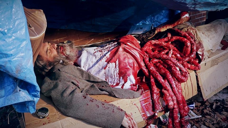 Among all the blood, gore, and surreal imagery, this micro-budget film strains most, not with its splatter, but with the more standard aspects of film making. The dialogue sounds more distant than it should at times. There were a few edits that confused the storytelling. And the actors are amateurs. Yet, this being an exploitation film, none of these shortcomings feel outside the norm for anything in that genre from the ’70s or ’80s. Because of the element of drug use, maybe those confusing edits are there to help the viewer experience what theta users experience. And while this is probably the first film most of the actors are starring in, many of them have a striking presence that makes up for their still-maturing acting abilities. These flaws are minor and knowing this was made for a fraction of even a low budget film, I’m excited to see what Bickel can do next with the experienced he gained here (his follow up is currently in production).