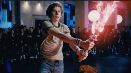 The film is virtually a love quadrangle: Scott starts the film dating underage Knives Chau (Ellen Wong), a girl so infatuated with him that she practically seems like a groupie for Scott’s band, Sex Bob-omb. Scott is a very passive character so he can’t bring himself to break up with Knives until he is certain things are going well with Ramona.